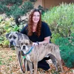 Ruth has two “children”: Shrek, a three-year-old English bulldog/beagle mix who is quite the character. He loves sleeping in, going for car rides, and going on hikes with Ruth. Ash, a one-and-a-half-year-old mastiff mix who just recently joined her family, loves to play with Shrek and is quite the couch potato.